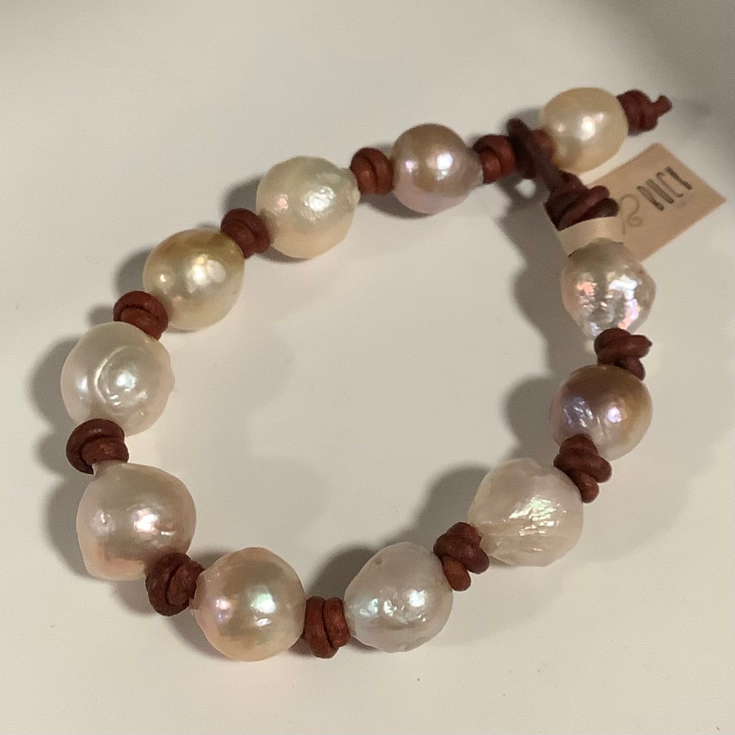 What an incredible natural freshwater pearl bracelet! There is only one and it is an average in size. These pearls are 11-13 mm in size and an absolute one of a kind piece.